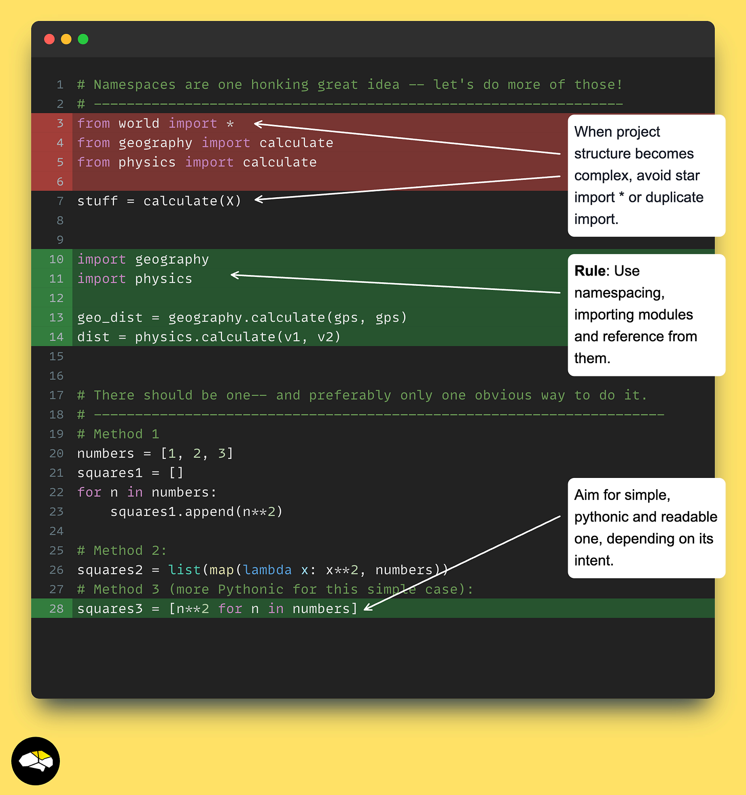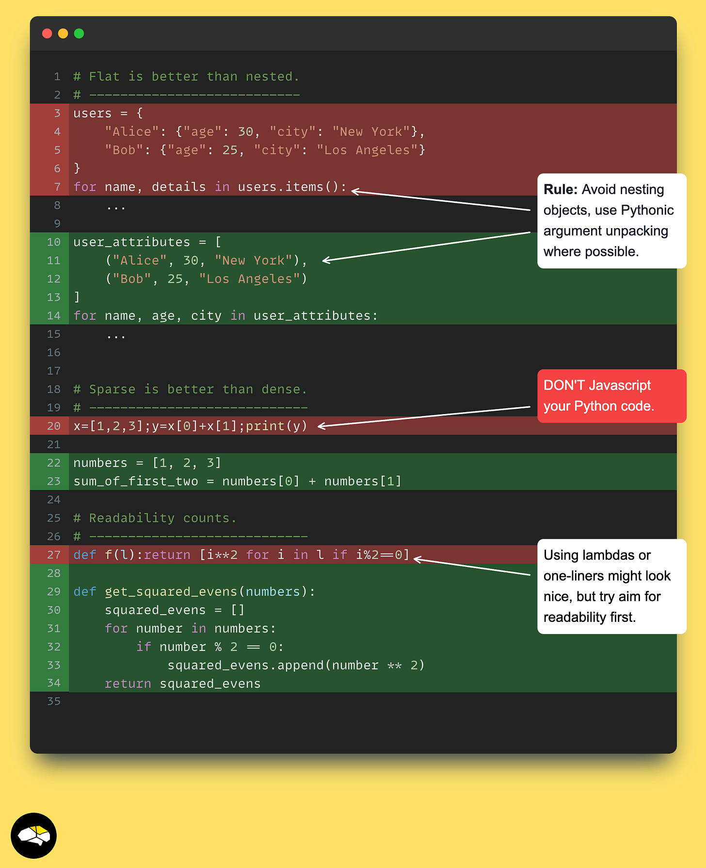 Python 是一种动态类型语言,可以让你快速完成工作。当你编写 Python 代码时,你应该致力于隔离每个方法和代码块的逻辑,使其首先具有可读性,即使这需要多行代码。诚然,某些功能可能可以用一行代码完成,但你写的行数越少,可能遇到的错误就越多。